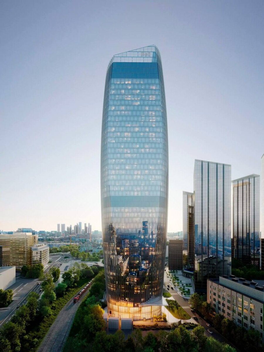 Утвержден проект футуристичного офисного небоскреба Bell, который будет построен компанией MR Group рядом с Белорусским вокзалом, неподалеку