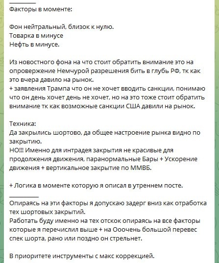 План на день из закрытого ТГ канала с Факторами за отскок