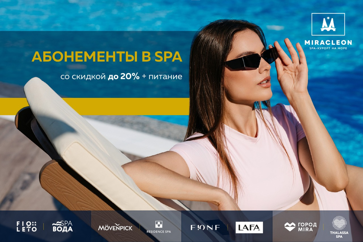 Планируете отдых, но не готовы бронировать номер? Мы представляем новую услугу — абонементы на гостевое пребывание в отелях SPA-курорта Miracleon. Теперь вы можете отдыхать чаще и выгоднее, наслаждаясь сервисом и гостеприимством даже без проживания со скидкой до 20%. Что вы получаете? - Доступ ко всем зонам: бассейны, SPA-центры, рестораны и бары, спортивные площадки и многое другое. - Ультра всё включено: наслаждайтесь безграничным выбором блюд и напитков в рамках концепции Ultra All Inclusive. Кроме FЮNF - входят только завтраки. - Развлечения для всех: ежедневная анимация, шоу-программы и активности для детей и взрослых. Почему это стоит попробовать? - Возможность без бронирования ощутить атмосферу роскошного отдыха. - Идеальный вариант для семейного досуга, дружеских встреч или романтического дня вдвоём. Предложение действует в отелях: FЮNF Luxury Resort & Spa Anapa Miracleon 5★, LaFa SPA Mövenpick Resort & SPA Anapa Miracleon 5★, Residence SPA Город Mira Family Resort & SPA Anapa