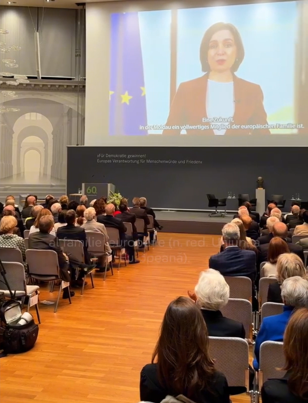 "Президент Молдовы Майя Санду была удостоена престижной премии имени Теодора Хойса - первого федерального президента Германии. Торжественная церемония награждения состоялась 24 мая в Штутгарте".