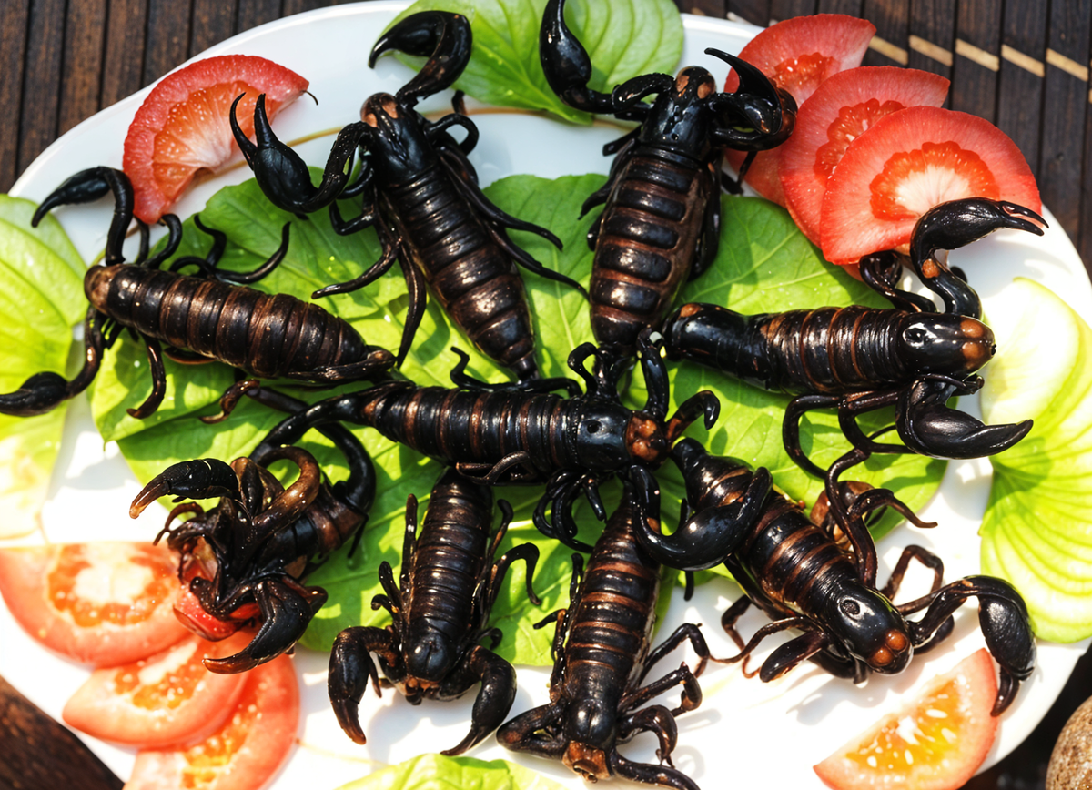 Жареные скорпионы - это дерзкое и, для многих, отталкивающее блюдо, которое, тем не менее, можно найти в некоторых частях Азии, особенно в Таиланде и Китае. Их обычно жарят во фритюре до хрустящего состояния, подавая как закуску или уличную еду. Многие описывают вкус жареного скорпиона как хрустящий и солёный, с лёгким привкусом, напоминающим чипсы или попкорн. В голове скорпиона, если она остаётся при приготовлении, может содержаться горьковатая жидкость. Несмотря на то, что это блюдо может показаться необычным, сторонники утверждают, что оно богато белком и обладает целебными свойствами, согласно традиционной китайской медицине. Однако, стоит помнить о возможных аллергических реакциях и необходимости убедиться в надежности источника, чтобы избежать употребления скорпионов, обработанных вредными веществами.
