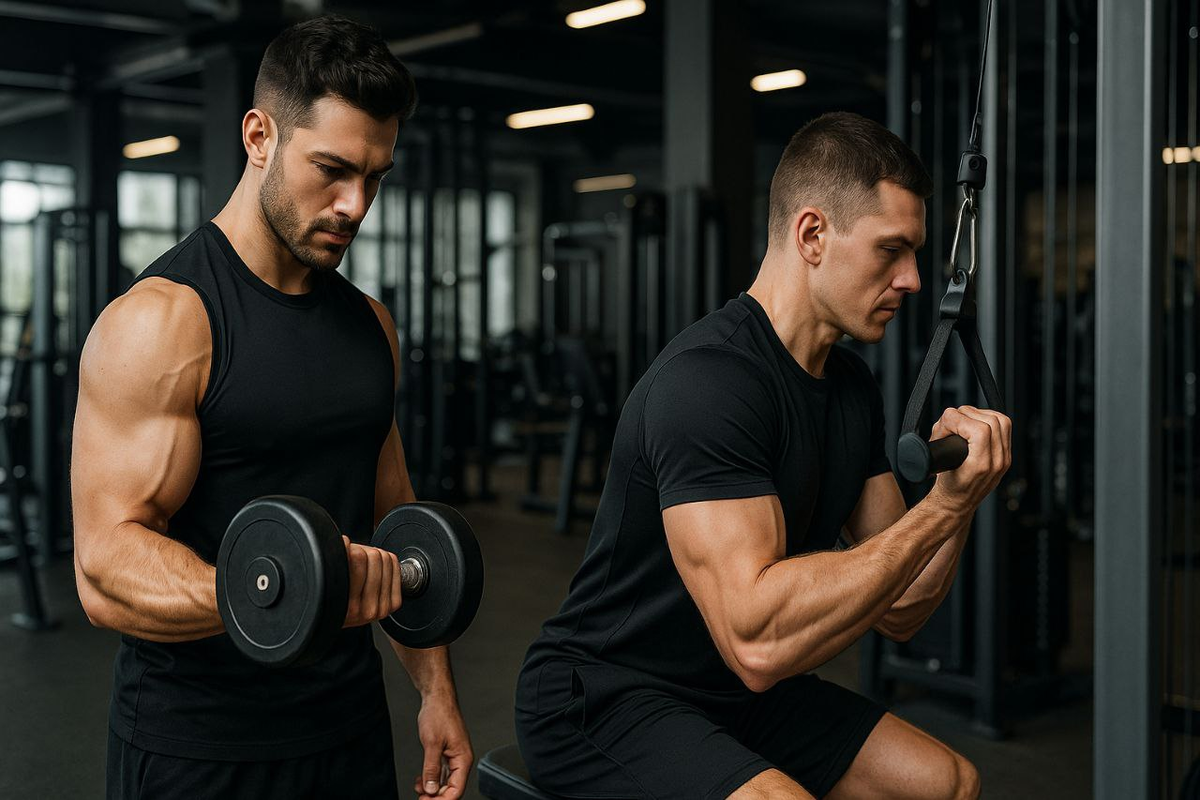 • Для рук: Подъем на бицепс + Разгибание на трицепс. Популярная и эффективная связка.