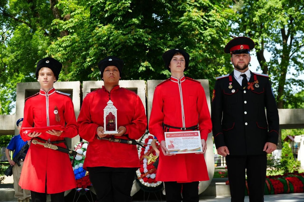 Представители Анапского отделения Союза казачьей молодежи Кубани приняли эстафету от Крымского района. Представителям Города воинской славы торжественно передали лампаду с горящей свечой – символ подвига наших предков, отдавших жизнь за свободу Родины.
