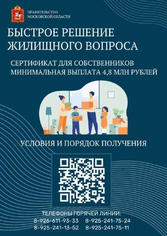 ΡΠ΅ΡΡΠΈΡΠΈΠΊΠ°ΡΠΎΠ² Π 2025 Π³ΠΎΠ΄Ρ Π² ΠΎΠΊΡΡΠ³Π΅ ΠΏΠΎΠ΄Π»Π΅ΠΆΠ°Ρ ΡΠ°ΡΡΠ΅Π»Π΅Π½ΠΈΡ ΠΌΠ½ΠΎΠ³ΠΎΠΊΠ²Π°ΡΡΠΈΡΠ½ΡΠ΅ Π΄ΠΎΠΌΠ°, Π²ΠΊΠ»ΡΡΠ΅Π½Π½ΡΠ΅ Π² Π³ΠΎΡΠΏΡΠΎΠ³ΡΠ°ΠΌΠΌΡ Β«ΠΠ΅ΡΠ΅ΡΠ΅Π»Π΅Π½ΠΈΠ΅ Π³ΡΠ°ΠΆΠ΄Π°Π½ ΠΈΠ· Π°Π²Π°ΡΠΈΠΉΠ½ΠΎΠ³ΠΎ ΠΆΠΈΠ»ΠΈΡΠ½ΠΎΠ³ΠΎ ΡΠΎΠ½Π΄Π° Π² ΠΠΎΡΠΊΠΎΠ²ΡΠΊΠΎΠΉ ΠΎΠ±Π»Π°ΡΡΠΈΒ». ΠΠΎΠΏΠΎΠ»Π½ΠΈΡΠ΅Π»ΡΠ½ΠΎΠΉ ΠΌΠ΅ΡΠΎΠΉ Π³ΠΎΡΠΏΠΎΠ΄Π΄Π΅ΡΠΆΠΊΠΈ Π΄Π»Ρ ΠΏΠ΅ΡΠ΅ΡΠ΅Π»Π΅Π½ΡΠ΅Π² ΠΈΠ· Π°Π²Π°ΡΠΈΠΉΠ½ΠΎΠ³ΠΎ ΠΆΠΈΠ»ΠΎΠ³ΠΎ ΡΠΎΠ½Π΄Π° Π² ΠΠΎΠ΄ΠΌΠΎΡΠΊΠΎΠ²ΡΠ΅ ΡΠ²Π»ΡΠ΅ΡΡΡ Π²ΡΠ΄Π°ΡΠ° ΡΠ΅ΡΡΠΈΡΠΈΠΊΠ°ΡΠ° Π½Π° ΠΏΡΠΈΠΎΠ±ΡΠ΅ΡΠ΅Π½ΠΈΠ΅ ΠΆΠΈΠ»ΠΎΠ³ΠΎ ΠΏΠΎΠΌΠ΅ΡΠ΅Π½ΠΈΡ. ΠΠΎΡΠΏΠΎΠ»ΡΠ·ΠΎΠ²Π°ΡΡΡΡ ΡΠ΅ΡΡΠΈΡΠΈΠΊΠ°ΡΠΎΠΌ ΠΌΠΎΠ³ΡΡ ΡΠΎΠ±ΡΡΠ²Π΅Π½Π½ΠΈΠΊΠΈ, ΡΡΠΈ Π΄ΠΎΠΌΠ° ΠΏΡΠΈΠ·Π½Π°Π½Ρ Π°Π²Π°ΡΠΈΠΉΠ½ΡΠΌΠΈ ΠΈ Π²ΠΊΠ»ΡΡΠ΅Π½Ρ Π² Π³ΠΎΡΠΏΡΠΎΠ³ΡΠ°ΠΌΠΌΡ ΠΈ ΡΡΠΎ Π΅Π΄ΠΈΠ½ΡΡΠ²Π΅Π½Π½ΠΎΠ΅ ΠΆΠΈΠ»ΡΠ΅. Π‘ΠΎΠ±ΡΡΠ²Π΅Π½Π½ΠΈΠΊΠΈ ΠΌΠΎΠ³ΡΡ ΠΏΡΠΈΠΎΠ±ΡΠ΅ΡΡΠΈ Π³ΠΎΡΠΎΠ²ΠΎΠ΅ ΠΆΠΈΠ»ΡΠ΅ Π² Π½ΠΎΠ²ΠΎΡΡΡΠΎΠΉΠΊΠ΅ Π½Π° ΡΠ΅ΡΡΠΈΡΠΎΡΠΈΠΈ Π»ΡΠ±ΠΎΠ³ΠΎ ΠΎΠΊΡΡΠ³Π° ΠΠΎΡΠΊΠΎΠ²ΡΠΊΠΎΠΉ ΠΎΠ±Π»Π°ΡΡΠΈ. Π‘ΡΠΎΠΈΠΌΠΎΡΡΡ 1 ΠΊΠ². ΠΌ ΡΠ°ΡΡΠ΅Π»ΡΠ΅ΠΌΠΎΠΉ ΠΏΠ»ΠΎΡΠ°Π΄ΠΈ - 174 839 ΡΡΠ±Π»Π΅ΠΉ. ΠΠ°ΡΠ²Π»Π΅Π½ΠΈΡ Π½Π° Π²ΡΠ΄Π°ΡΡ ΡΠ΅ΡΡΠΈΡΠΈΠΊΠ°ΡΠ° Π² ΡΠ΅Π³ΠΈΠΎΠ½Π΅ Π±ΡΠ΄ΡΡ ΠΏΡΠΈΠ½ΠΈΠΌΠ°ΡΡ Ρ 1 ΠΈΡΠ½Ρ ΠΏΠΎ 1 Π°Π²Π³ΡΡΡΠ° 2025 Π³ΠΎΠ΄Π°. ΠΠ΅ΡΠ΅ΡΠ΅Π½Ρ Π°Π΄ΡΠ΅ΡΠΎΠ² https://cloud.mail.ru/public/EJPV/oz5AMRykp ΠΠΎΠ»Π΅Π΅ ΠΏΠΎΠ΄ΡΠΎΠ±Π½ΡΡ ΠΈΠ½ΡΠΎΡΠΌΠ°ΡΠΈΡ ΠΏΠΎ ΠΏΠ°ΠΊΠ΅ΡΡ Π΄ΠΎΠΊΡΠΌΠ΅Π½ΡΠΎΠ² ΠΌΠΎΠΆΠ½ΠΎ ΠΏΠΎΠ»ΡΡΠΈΡΡ Π² ΠΏΡΠΎΡΠΈΠ»ΡΠ½ΠΎΠΌ ΠΎΡΠ΄Π΅Π»Π΅ Π°Π΄ΠΌΠΈΠ½ΠΈΡΡΡΠ°ΡΠΈΠΈ ΠΏΠΎ Π½ΠΎΠΌΠ΅ΡΡ: 8(4967)35-52-92.