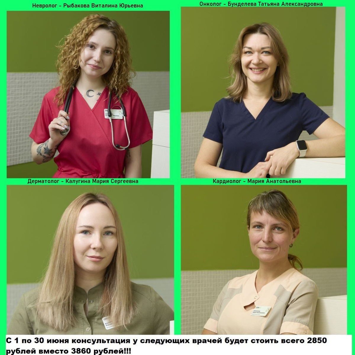 📢 АКЦИЯ В ТЕРРАВЕТ С 1 ИЮНЯ! ⠀ Снижаем цену на приём узких специалистов! 💸 ⠀ С 1 по 30 июня консультация у следующих врачей будет стоить всего 2850₽ вместо прежних 3860₽: ⠀ 🧠 Невролог — РЫБАКОВА Виталина Юрьевна 🐾 Дерматолог — КАЛУГИНА Мария Сергеевна ❤️ Кардиолог — МОИСЕЕВА Мария Анатольевна 🎗 Онколог — БУНДЕЛЕВА Татьяна Александровна ⠀ Если вы давно планировали визит к узкому специалисту — сейчас самое время. ⠀ 🔔 Акция действует только в течение июня! ⠀ 📞 Записывайтесь заранее — места по сниженной цене ограничены! ⠀ #ТерраВет #ветклиника #акция #ветеринарМосква #здоровьеживотных
