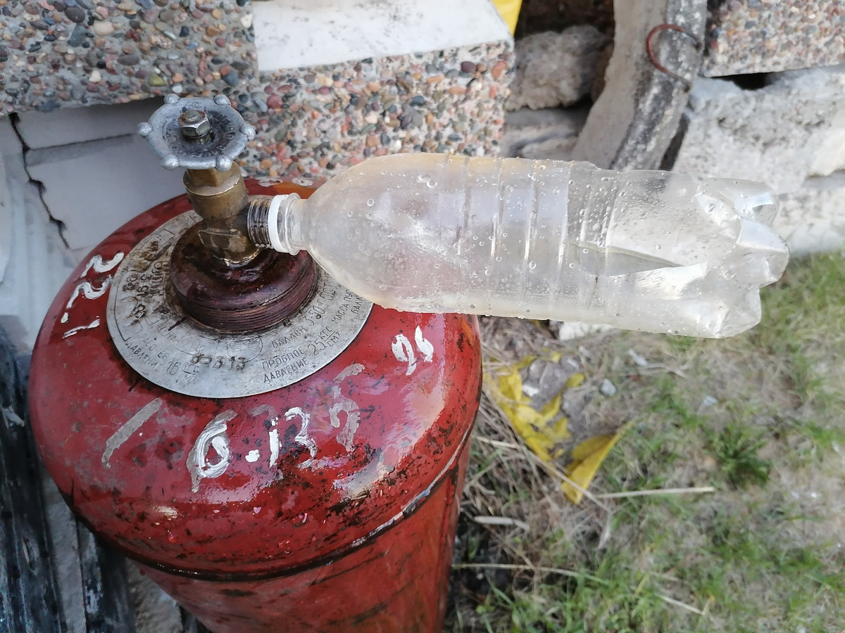 Шашлыки на участке до сих пор жарили в самом простом мангале за 500 руб. Все присматривался к нормальным вариантам на высоких ножках. Но недавно мне отдали 50-литровый газовый баллон. Как не сделать нормальный мангал из такого подарка. Понимание, как сделать мангал из баллона появилось давно после изучения вариантов. Про это в свое время делал даже статью: В статье подробное описание, схема и примеры. Либо можно для понимания посмотреть 2-3 видео в ютубе. Но я немного сделал по-своему. Если в самом баллоне все, как рекомендуют, то ножки сделал по своей конструкции. Но обо всем по порядку. Баллон хоть и пустой, но в нем есть остатки газа, растворенные в конденсате. Просто так начать его резать болгаркой или начинать сварку – можно получить не слабый такой «бабах». Поэтому, сначала нужно наполнить баллон водой. Я наполнял таким способом с помощью бутылки. Долго, это заняло почти весь вечер, т.к. открутить кран не смог и позже его просто срезал. Далее – разметка крышки. Обозначаем линии в