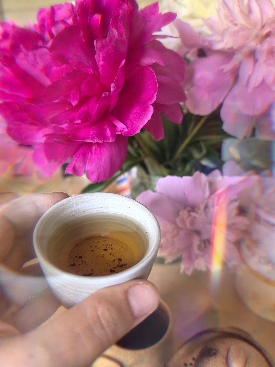 Доброе утро, мы с любимой рубиновой габой будем готовить сегодня вам гидролат из Пиона. Это невероятная цветочная вода уровня Розы. Она божественно ухаживает за кожей вокруг глаз. Будет ещё и крем на основе гидролата Пиона гидролата для ухода за этой зоной с мацератом сирени на масле виноградной косточки и особым пептидным комплексом для кожи вокруг глаз. Гидролат Пиона роскошно увлажняет кожу лица, делает ее бархатной, гладкой, упругой. Он является прекрасным естественным средством продления молодости кожи, сохранения тона лица, красоты и свежести. Как я получаю гидролаты? О, это отдельная песня! Давным-давно я купила себе шикарный медный перегоночный куб аж в Португалии, заказав у мастера. Называется он аламбик. Технология эта сейчас распространена для дистилляции алкоголя, но изначально это был способ сохранить ессенции растений и получить эфирные масла. Я кладу в воду лепестки, вода подогревается, по особой медной колонне в аламбике пар поднимается, переходит в змеевик, где
