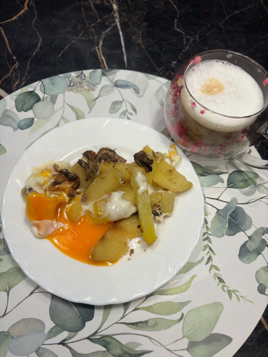 Честно говоря, устала отдыхать от готовки и по возвращению домой из отеля я с радостью провожу время на кухне. Люблю готовить, мне это не сложно, да и блюда я выбираю не сложные Печеный картофель, шампиньоны, яйцо накануне жарили шашлыки, овощи и пекли картофель, остались не съеденными шампиньоны и картошка. Утром просто обжарила картофель и шампиньоны на сковороде с яйцом, добавила соль и перец. Вкуснотища! И запах классный Вафли творожные в электровафельнице со сметаной и киви готовила по новому рецепту, получилось вкусно. 300 грамм творога ( я беру всегда самый дешёвый в брикете), 2 крупных яйца, 120 грамм рисовой муки, 100 грамм молока, разрыхлитель Яичница с жареными шампиньонами Рис с домашней кабачковой икрой и кофе Пельмени очень редко, но мы покупаем пельмени Щи из свежей капусты. Сварила буквально за 25 минут. У меня в морозилке есть бульон (варю целую курицу, делю пополам бульон и мясо, из одной половины готовлю сразу, вторую замораживаю). Очень удобно когда ограничено