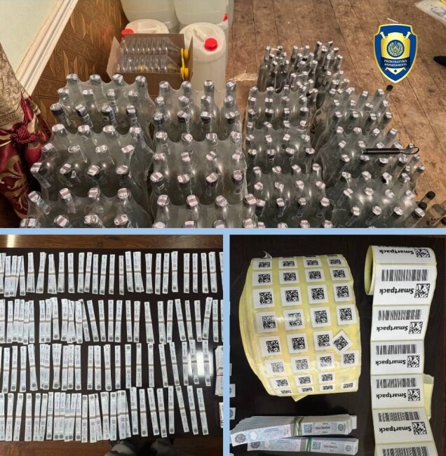 Сотрудниками территориального Управления Департамента Элликкалинского района, при содействии сотрудников Службы государственной безопасности и органов внутренних дел, было проведено оперативное мероприятие. В ходе мероприятия были выявлены двое граждан, которые наладили подпольное производство алкогольной продукции. Злоумышленники занимались изготовлением водки под известным брендом "Каратау". При обыске у них удалось изъять 820 бутылок готовой к реализации алкогольной продукции, 2 916 крышек, 22 688 единиц QR-кодов поддельной цифровой маркировки, 1 980 стеклянных ёмкостей и 1 370 поддельных акцизных марок.