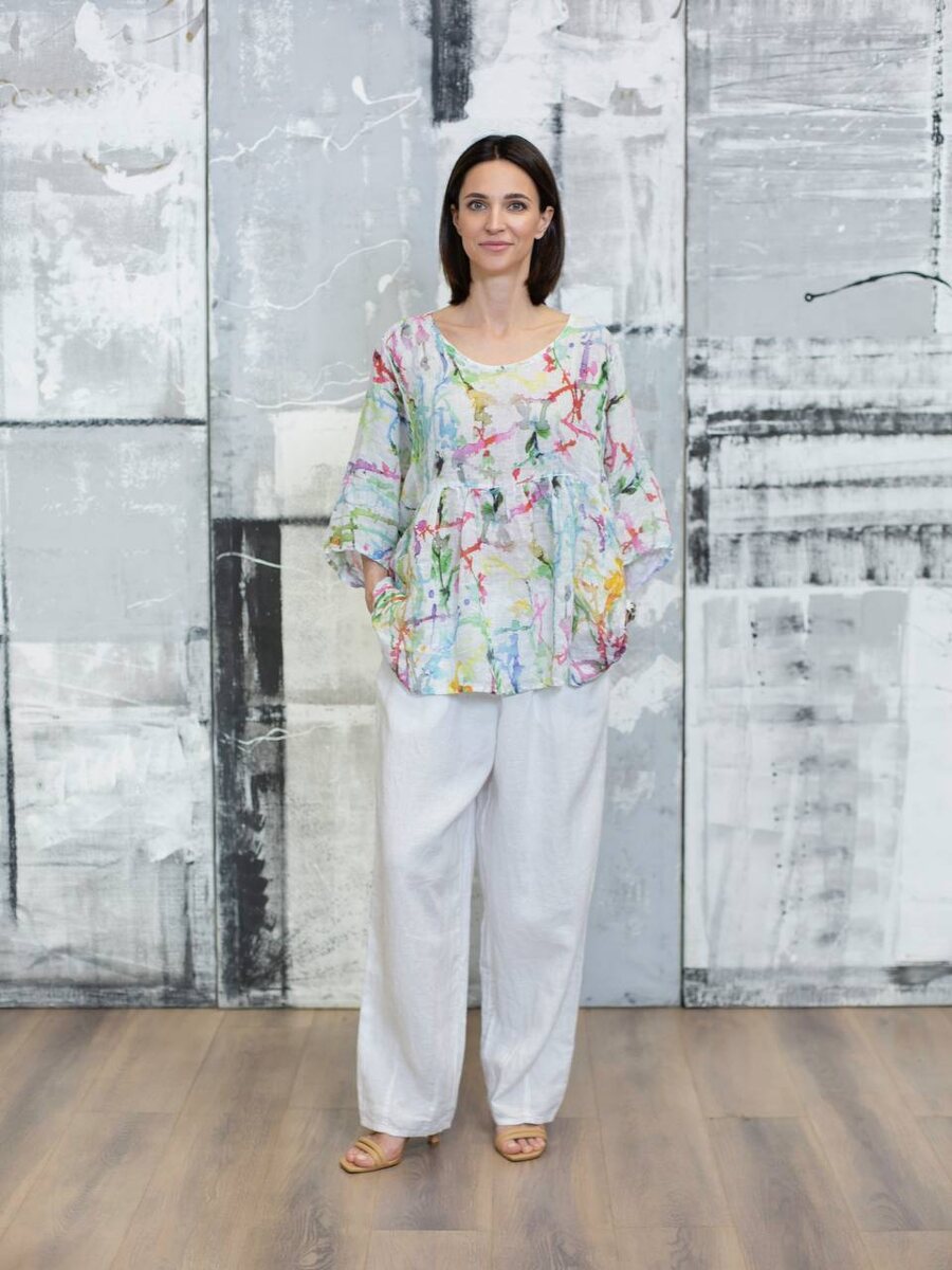 Лён — безусловный must-have летнего сезона, а вещи от бренда GRIZAS в SOLLERY сочетают комфорт, актуальный крой и выразительные детали. В образе: свободная белая блуза из 100% льна с акварельным разноцветным принтом, мягко спущенным плечом и рукавом 3/4. Отрезная линия по кокетке добавляет структуру и подчёркивает лёгкость силуэта. В пару — белые льняные брюки свободного кроя на комфортной резинке, с лёгким заужением к низу. Универсальный комплект подойдёт для городской жары, отдыха и лёгких летних образов. Для оптового сотрудничества пишите нам: 📲-в директ 📲-по номеру 8 800 511 51 95 📲- +7 495 146-92-72 📲Наш сайт — https://sollery.pro ✉️-на почту info@sollery.fashion