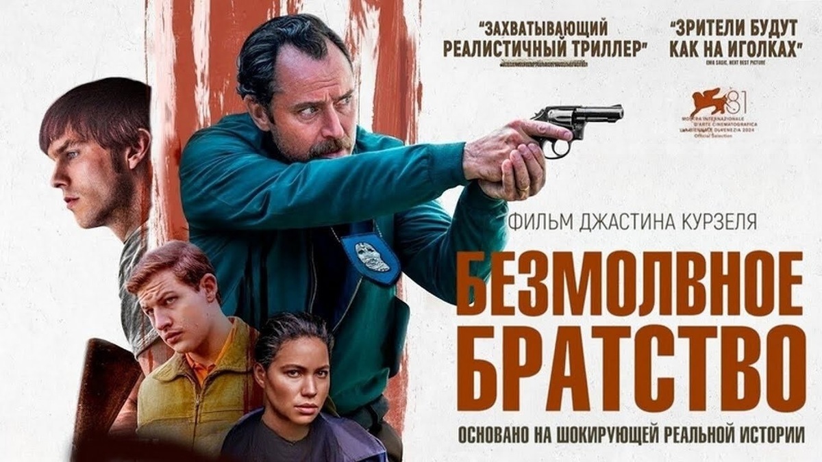Помню, как в 80-е годы прошлого века в «Комсомольской правде» была опубликована статья, как в каком-то российском городе раскрыли организацию неофашистов. Для многих это был шок. А потом, в дикие 90-е уже привыкли, что в России есть скинхеды, которые калечили, убивали людей неславянской внешности. И помню, как мать одного такого говорила мне: ну как же так, его дед воевал против фашистов, а внук… Криминальная драма «Безмолвное братство»/The Order 2024 года основана на реальной истории. 80-е годы, штат Айдахо. Казалось бы, ну что тут может происходить из ряда вон выходящее? А здесь готовилась, ни много, ни мало, целая революция. Банда неофашистов грабила банки, собирая деньги на покупку оружия, вербовку новых членов организации и т.д. Агент ФБР Терри Хаск (постаревший Джуд Лоу), которого сослали сюда из Нью-Йорка, расследует со своим напарником ограбления банков. Через какое-то время они понимают, что дело серьезнее, чем им кажется. Показали деревни, где свободно можно было увидеть фаши