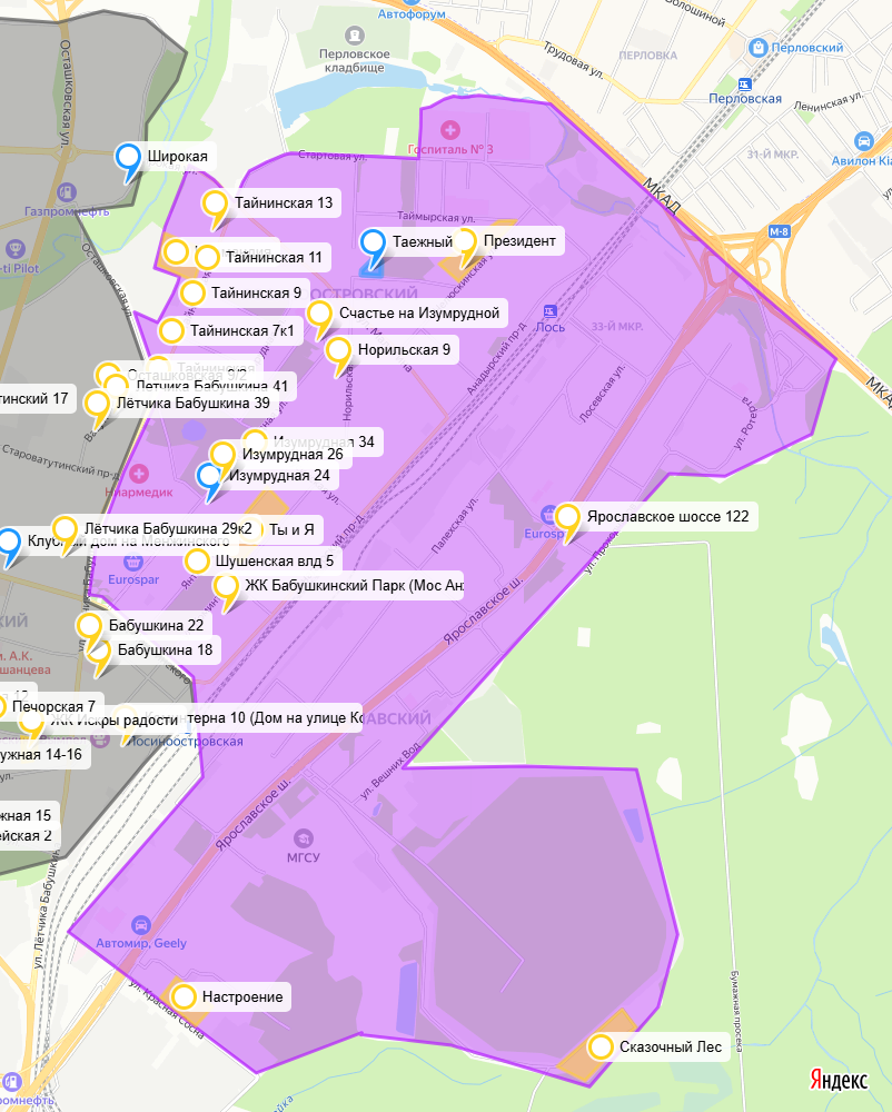 Друзья, добрый день, продолжаем с Вами изучение локаций северо-востока Москвы. Уже были Алексеевский, Останкинский, Свиблово и Медведково. Сегодня последний жилой массив северо-востока Москвы - Ярославский/Лосиноостровский. 2 административных района Москвы, расположенные вдоль Ярославского шоссе и жд Ярославского направления. Как-то так: Развивающаяся локация на крайнем северо-востоке Москвы между Лосиноостровским парком и МКАД. Минус - транспортная доступность - либо наземным транспортом по Ярославке до ВДНХ, либо по жд Ярославской ветки, пользуясь платформой Лось. Из достопримечательностей, наверное, самая большая парковая зона Москвы Из парков поменьше - Джамгаровский Локация застраивалась с середины 70-х, поэтому в основном - брежневские панельки. Из современных комплексов, обратите внимание на жилые комплексы: Таёжный, Счастье на Изумрудной, Ты и Я, Изумрудная 24, Настроение, Нормандия, Я51 и Сказочный Лес. Из строящегося - ЖК "Мираполис" от компании "Основа", правда, это апартам