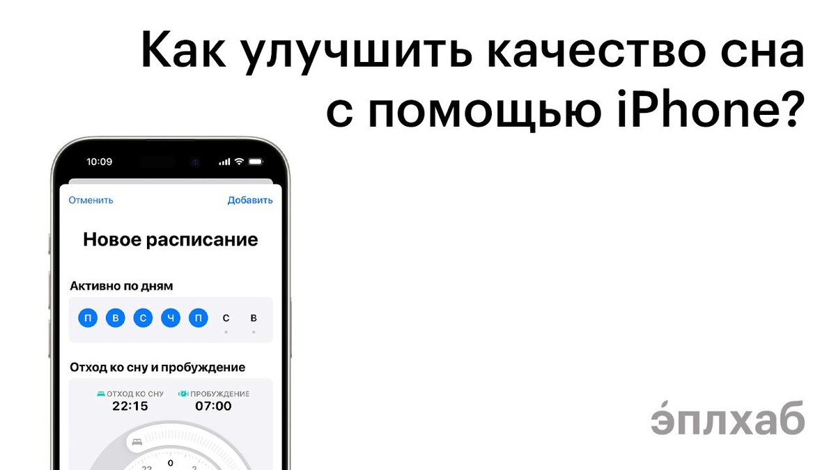 Сон — это не только про количество часов, но и про качество. Часто мы ложимся позже, чем планировали, залипаем в экран, засыпаем под видео и утром чувствуем себя разбитыми. Но в iPhone есть несколько полезных функций, которые помогают выстроить здоровый режим: 1. Режим сна Находится в приложении «Часы», вкладка «Сон». Здесь можно настроить: — время подъёма, — сколько часов вы хотите спать, — в какие дни режим должен работать, — за сколько времени до сна iPhone напомнит, что пора ложиться, Когда включается режим сна, телефон: — автоматически включает режим “Не беспокоить”, — приглушает экран, — отключает уведомления, — показывает спокойный экран блокировки с информацией о времени сна. Вся статистика отображается в приложении «Здоровье» — вы можете видеть, сколько вы спали, когда ложились и просыпались. Это помогает понять, где сбивается режим, и постепенно его выровнять. 2. Night Shift — забота о ваших глазах и мелатонине Синий свет экрана подавляет выработку мелатонина — гормона, ко