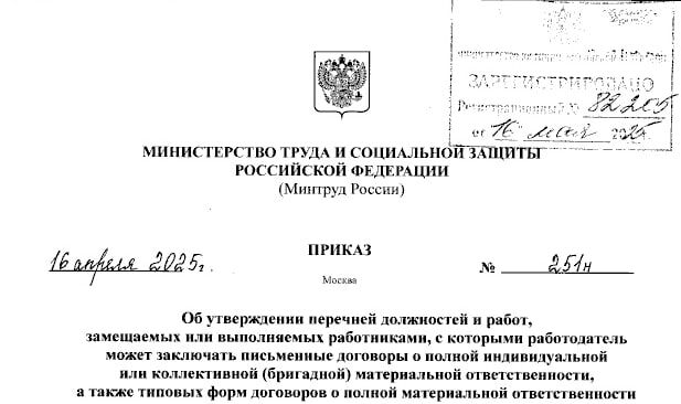💸 Полная материальная ответственность: новый перечень должностей и работ