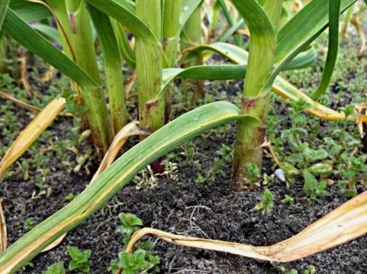 Пожелтение листьев — защитная реакция растения. Чеснок экономит силы. Сбрасывает балласт. Пытается выжить.