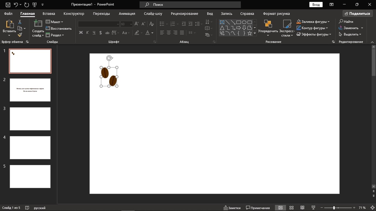 Как сделать динамичный фон в презентации? Пошаговая инструкция Знакомая многим ситуация: создали презентацию, но она выглядит скучной. И вроде все хорошо: и текст выверен, и изображения органично смотрятся, и инфографика есть… Но чего-то не хватает. При этом есть страх перестараться с эффектами и превратить бизнес-презентацию в проект третьеклассника. Отличное решение в такой ситуации — динамичный фон, который будет двигаться при смене слайдов. Мы — маркетинговое агентство Biecom. Более 10 лет наша команда создает презентации для бизнеса, для внутренних и внешних коммуникаций. С нами вы научитесь делать проекты в PowerPoint, которые запомнятся аудитории надолго. Сегодня покажем и расскажем, как создать динамичный фон. В качестве примера представим ситуацию, что ваша команда устала пить растворимый кофе и тратить немалую часть зарплаты на капучино из ближайшей кофейни. В связи с этим вы с коллегами решили убедить руководителя арендовать или приобрести кофемашину в офис. Чтобы разговор д
