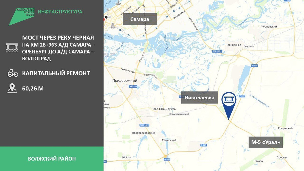⛔️ До 30 ноября закроют проезд по мосту через Черную речку в начале трассы «Самара — Оренбург», возле перекрестка с обводной дорогой Там заменят опоры и балки пролетных строений моста, верхний слой покрытия, установят новые дорожные знаки и барьерное ограждение. Объезжать закрытый участок власти рекомендуют по федеральным дорогам А-300 и Р-229. А также по дороге «Николаевка — Черновский — Белозерки».