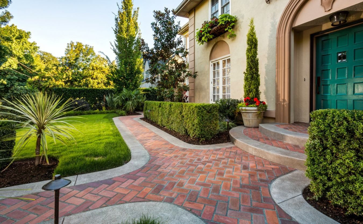 - Тротуарная плитка: Используйте плитку для оформления дорожки, ведущей к входной двери. Выберите нейтральные оттенки (серый, бежевый, черный), чтобы создать лаконичный и стильный вид.