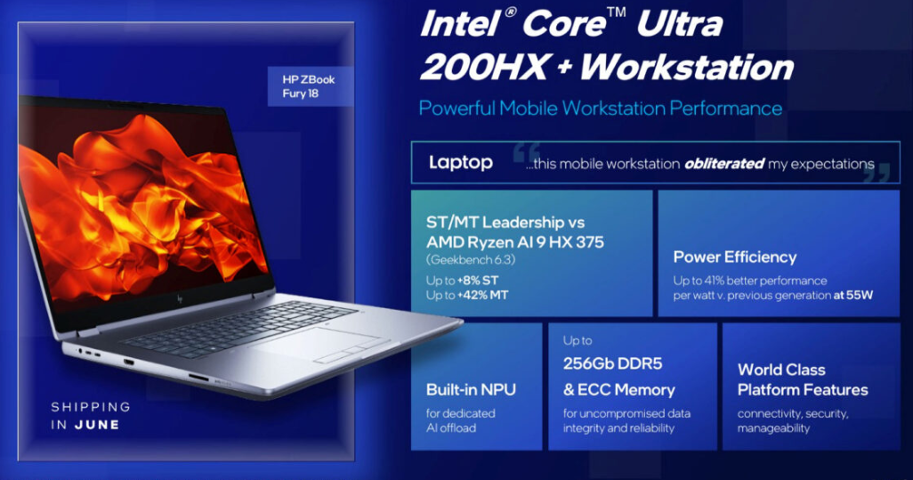 Intel заявила о превосходстве Core Ultra 200HX и Core Ultra 200H над процессорами AMD