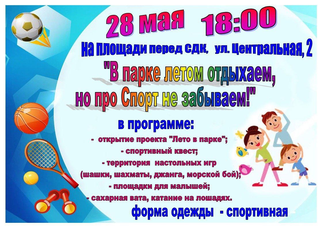 Красноуральский СДК приглашает жителей поучаствовать в проекте "Лето в парке". Дата проведения:28 мая. Место проведения: село им.9 Января, ул. Центральная, 2 Начало в 18:00. Вход свободный.