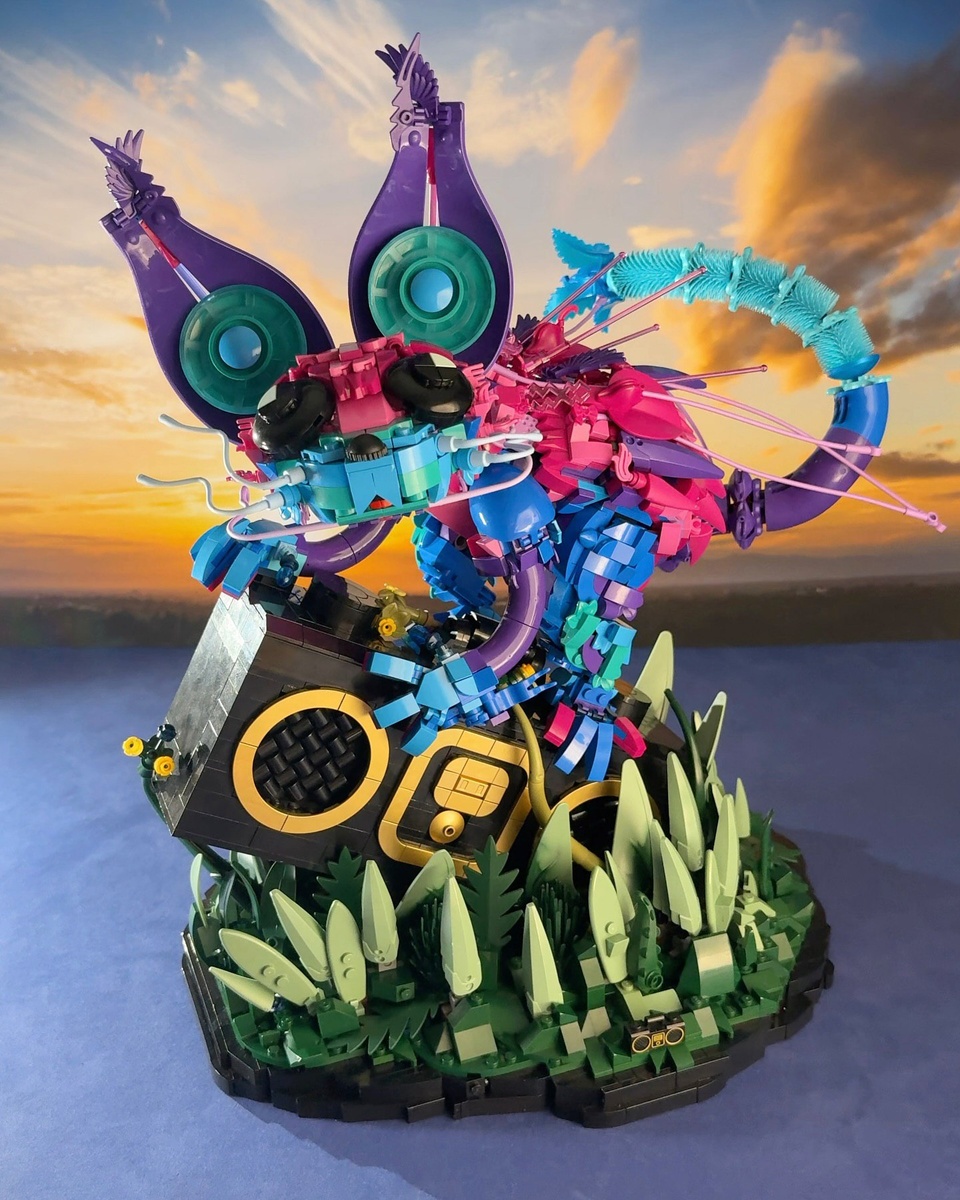 Кролик-кот-дух — самый необычный LEGO-зверь 🌀 Стив Эдвардс собрал потрясающего гибрида из кролика, кота и духа! В ход пошли крылья гарпии из CMF для ушей, мочалки для хвоста и даже вязаная шапка вместо носа. Вся эта красота балансирует на увеличенном бумбоксе — уши-колонки добавляют вайб электронной музыки. Выглядит безумно круто! Источник: The Brothers Brick