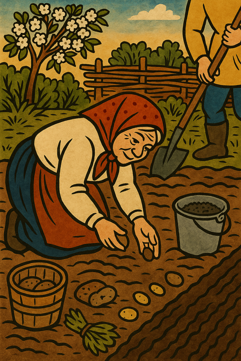 Π° Π±ΡΠΎΡΠ°Π»Π° ΠΏΠ΅ΡΠ²ΡΠΉ Π»Π΅ΠΏΠ΅ΡΡΠΎΠΊ. ΠΠ°Π±ΡΡΠΊΠ° Π³ΠΎΠ²ΠΎΡΠΈΠ»Π°: Β«ΠΠΎΡΠ°Π΄ΠΈ Π΄ΠΎΠ±ΡΠΎΠΌ β Π²ΡΠΊΠΎΠΏΠ°Π΅ΡΡ ΡΠ°Π΄ΠΎΡΡΡΒ». ΠΠΎΠ»ΠΎΠ΄ΡΡ ΠΊΠ°ΡΡΠΎΡΠΊΡ Π²Π°ΡΠΈΠ»ΠΈ Π² ΠΌΡΠ½Π΄ΠΈΡΠ΅, ΡΠ΄Π°Π±ΡΠΈΠ²Π°Π»ΠΈ ΡΠΊΡΠΎΠΏΠΎΠΌ ΠΈ ΠΌΠ°ΡΠ»ΠΎΠΌ. ΠΠ»ΠΈ Π·Π°ΠΏΠ΅ΠΊΠ°Π»ΠΈ Π² Π·ΠΎΠ»Π΅, ΠΏΠΎΠΊΠ° ΠΏΠ΅ΡΡ ΡΡΠΏΠ»Π°Ρ β ΡΠ°ΠΊ ΠΆΠ΅, ΠΊΠ°ΠΊ ΠΏΠ΅ΡΡΠ½ΡΠΉ Π»ΡΠΊ ξfileciteξturn3file6ξ. ΠΠ· ΡΡΠΎΠ΄Π»ΠΈΠ²ΡΡ