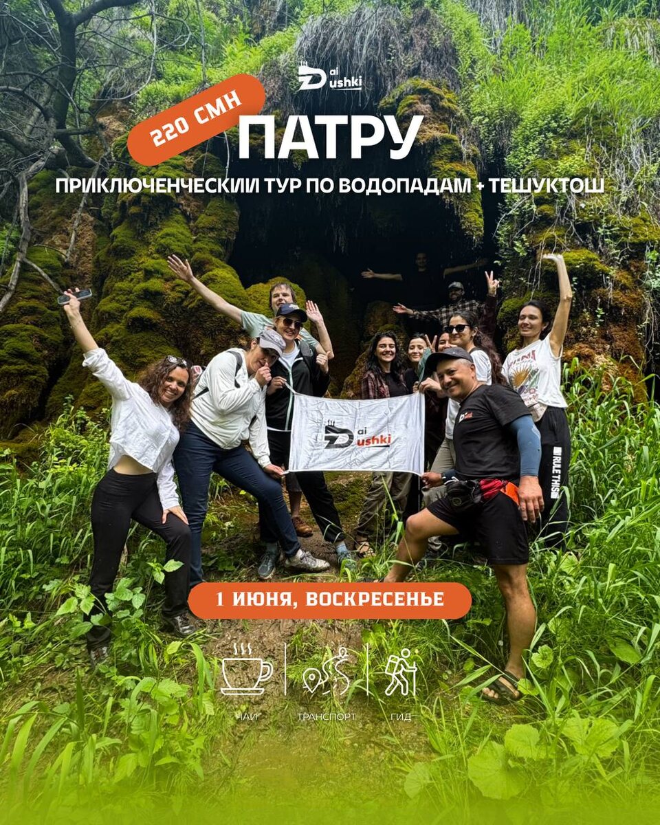 В это воскресенье, 1 июня, мы отправляемся в одну из приключенческих локаций, живописный каскад водопадов в Патру, известный как водопады Патру. Эти водопады расположены в горной местности, недалеко от села Шахринав, примерно в 50 км к западу от Душанбе. Они представляют собой серию водопадов, ниспадающих по склонам, создавая впечатляющее зрелище. Местность, где расположены водопады, находятся в глубоком овраге, скрытым от глаз людей, что делает его более загадочным и сказочным. 1 июня вс, Патру приключенческий тур по водопадам + Тешуктош 🕔 07:00 - 19:00 💺ДОСТУПНО: 8 мест 🥾Сложность: 7/10 💳 220 с ✅ дорога, гид, горячий чай, посещение Тешуктоша Водопады Патру являются популярным местом для отдыха и походов, особенно в летние месяцы, когда температура воздуха поднимается выше 30 градусов. Они привлекают как местных жителей, так и туристов своей природной красотой и возможностью насладиться прохладой в жаркую погоду. Открой лето 2025 года посетив это сказочное место! ☎️ Для зап