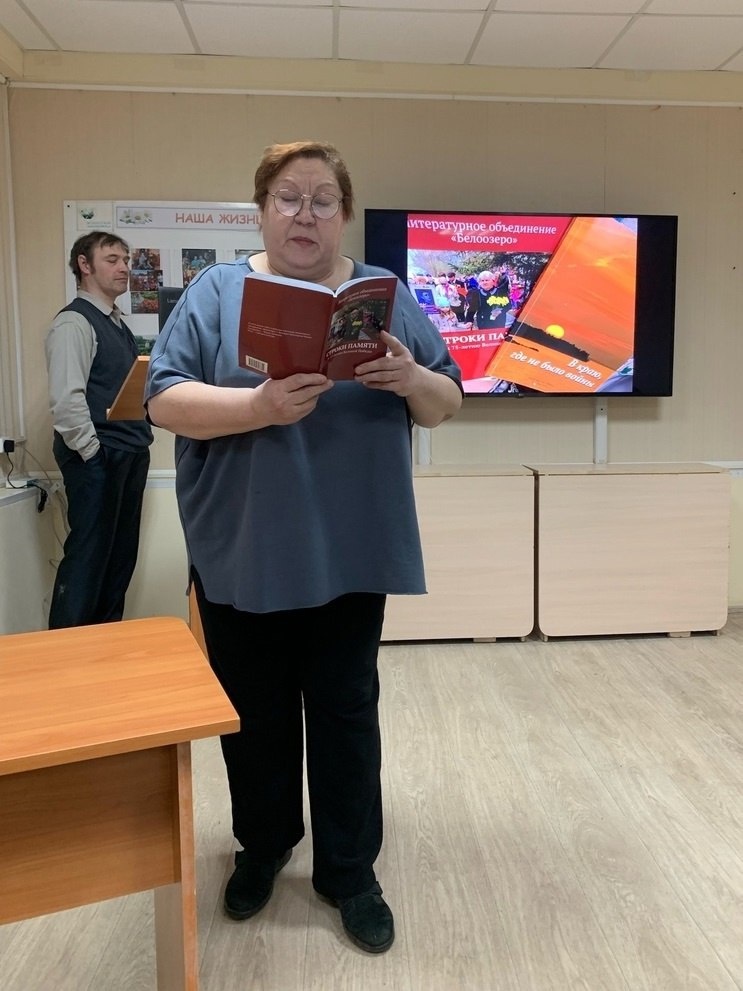 🌟 Татьяна Ермакова и встречи в библиотеках 23 апреля Татьяна Ермакова приняла участие в программе Белозерской библиотеки, проводившейся в рамках акции «Библионочь». Она почитала свои «военные» стихи и рассказала о сборнике белозерских поэтов и прозаиков "Строки памяти", вышедшей 5 лет назад к предыдущему юбилею Победы, где она выступила не только как один их авторов, но и как редактор-составитель. А 25 апреля на встрече со школьниками Антушевской сельской школы Татьяна представила две свои книги из серии «Вологжане – верные сыны Отечества», рассказала о героях книг. Дети слушали внимательно и заинтересованно. Татьяна Ермакова — участник проекта «Завтрашние классики: воспитание через слово», реализуемого Союзом детских и юношеских писателей при поддержке Президентского фонда культурных инициатив.