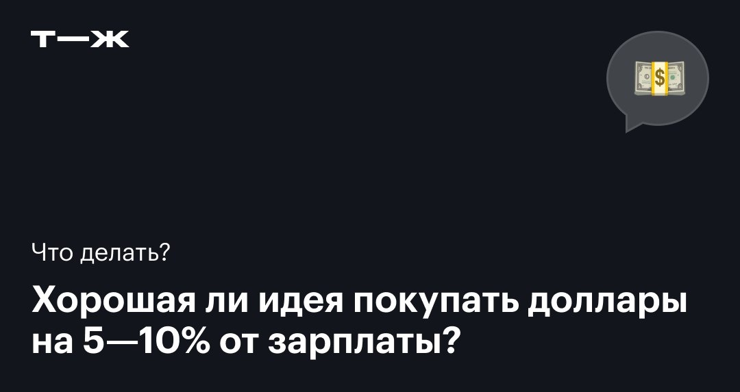💰Регулярные сбережения. Так вы создадите полезную привычку, откладывая часть дохода каждый месяц. Дисциплина важна для накоплений и инвестиций: вы начнете формировать финансовую подушку или инвестиционный портфель. 💰Усреднение курса. Покупая каждый месяц по чуть-чуть, вы не рискуете купить сразу много долларов по невыгодному курсу. 💰Простота. Купить доллары легко. Для этого не надо открывать брокерский счет или ИИС, изучать рынок ценных бумаг или делать что-то еще. 💰Защита от кризиса. В случае экономических проблем или геополитических потрясений курс доллара может сильно взлететь. Накопления в валюте помогут пройти кризис с меньшими сложностями или даже заработать. Это плюсы — а в статье также рассказали про минусы такого подхода и более прибыльные способы вложиться в валюту: https://t-j.ru/tg/dollar-every-month/