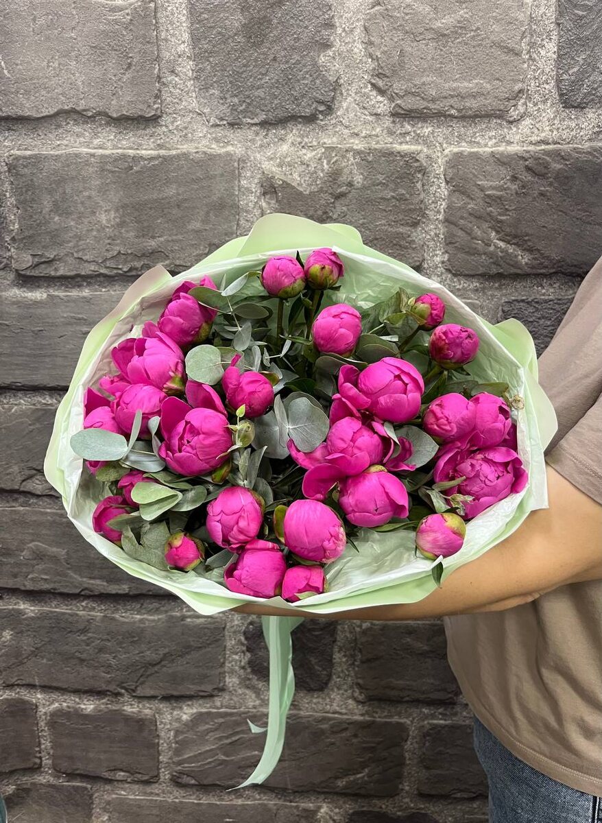 Пионы, которые говорят сами за себя 25 ярко-розовых пионов — как разгар лета, собранный в одном букете. Они ещё немного закрыты, но это только интрига: раскроются — и начнётся настоящее цветочное волшебство. 🌸 Мягкие лепестки, насыщенный цвет, и аромат, который уносит куда-то в сад под открытым небом. 💚 Веточки эвкалипта добавляют прохладу и лёгкую зелёную нотку — как утро после грозы. 💐Это не просто букет. Это событие. Подарок, который невозможно не заметить. Жест, который запомнится. Из «Лавки цветочных историй» — с любовью к каждому цветку. Упакуем, подпишем открытку и доставим, как по нотам.