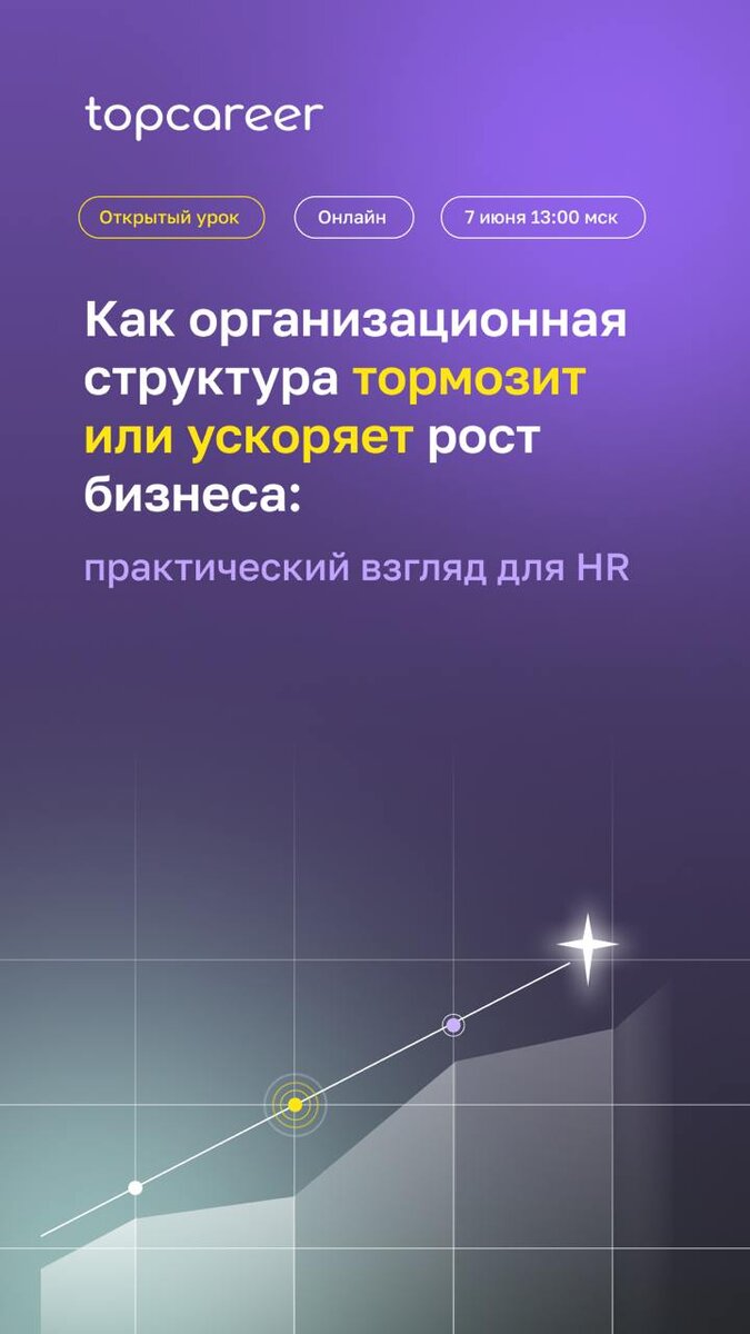 Оргструктура «не тянет» текущие бизнес-задачи? Компания растёт, а всё внутри будто «сыпется»? • Руководители тонут в операционке • Появляются новые роли и нагрузка перераспределяется хаотично • Сложно понять, кто за что отвечает Это не «проблемы роста». Это — оргструктура, которая устарела. ✏️И просто «перерисовать оргчарт» не спасёт. На уроке Как организационная структура тормозит или ускоряет рост бизнеса: практический взгляд для HR: ✅разберём, по каким сигналам понять, что структура «не тянет»; ✅покажем, почему без изменений в процессах и ролях всё сдуется; ✅ сравним 3 рабочие модели масштабируемых структур — и как выбрать свою Регистрируйтесь — это не про теорию, это про реальность, с которой HR сталкиваются каждый день. Зарегистрироваться