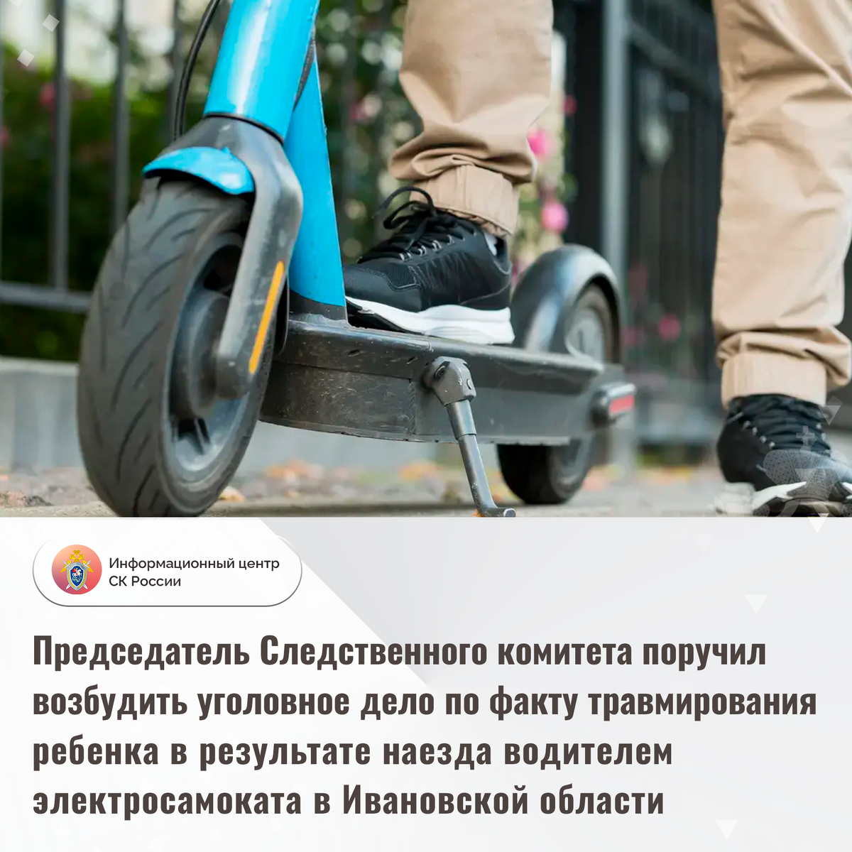 Председатель Следственного комитета поручил возбудить уголовное дело по факту травмирования ребенка в результате наезда водителем электросамоката в Ивановской области
