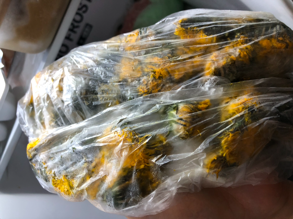 Мы решили сохранить летнее богатство природы, заморозив цветы. Благодаря этому зимой у нас всегда под рукой был натуральный и ароматный чай. Мы прибегали к завариванию одуванчика не очень часто, всего раза 4 за зиму, поэтому запасы еще сохранились, но мы их, конечно, скоро обновим, потому что оптимальное время хранения замороженного сырья - 12 месяцев.