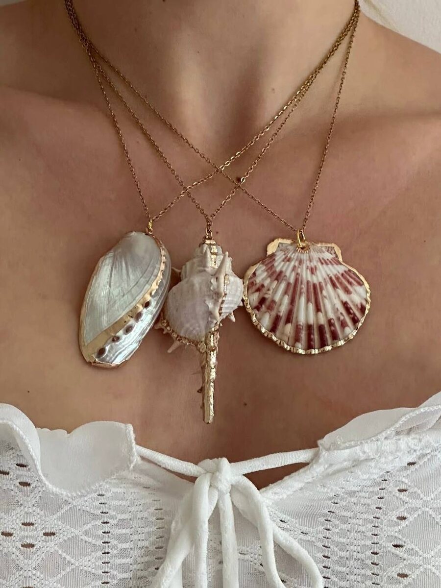 «Морские» украшения вновь на пике популярности. Но если в прошлом году этот тренд диктовала популярность стиля мермейдкор, то в этом такие аксессуары — часть образов в стиле бохо. Никакого минимализма! Выбирайте крупные подвески со множеством деталей. Grazia