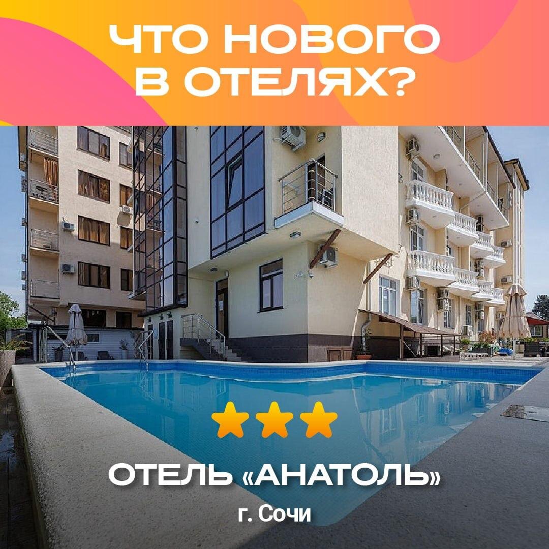 🆕🆕 Важные обновления! Следите за изменениями в отелях, чтобы предлагать клиентам только лучшие варианты отдыха! В новом сезоне гостей отеля "Анатоль"⭐️⭐️ждёт ещё и бассейн: отдыхающие могут проводить в нём время в любую погоду благодаря искусственному подогреву до комфортной температуры. Пространство вокруг бассейна оборудовано лежаками и зонтиками. 📍 Отель расположен почти в самом центре Сочи, поэтому отдыхающие смогут быстро добраться до Олимпийского парка, посетить дендрологический парк «Южные культуры», парк развлечений, дельфинарий или океанариум. Неподалеку открыты торговые центры, в шаговой доступности рынок, где всегда есть свежие фрукты и овощи. 🌳 Территория со всех сторон и окружена садом и круглосуточно охраняется. Можно забронировать номера как для одного человека, так и для большой компании. Отель «Анатоль» с удовольствием выбирают семейные пары с детьми, студенты, любители активного отдыха. Ставьте ❤️, если любите эту рубрику! #Обновления_отелей@ect24