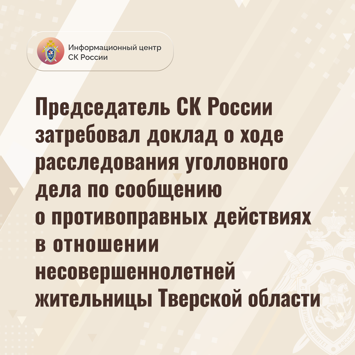 Председатель СК России затребовал доклад о ходе расследования уголовного дела по сообщению о противоправных действиях в отношении несовершеннолетней жительницы Тверской области