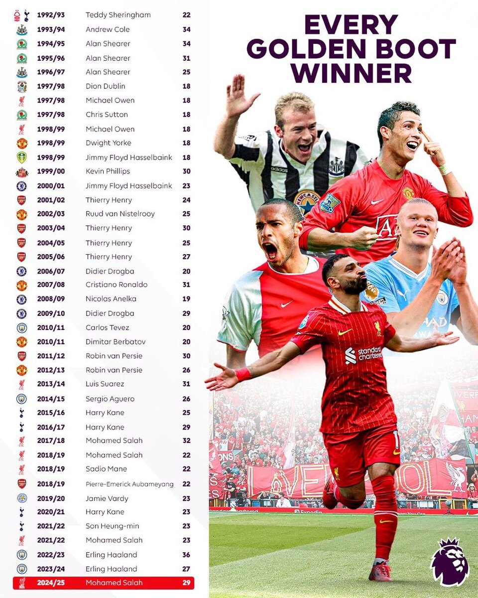 Все обладатели "Золотой бутсы" Премьер-Лиги 🥇