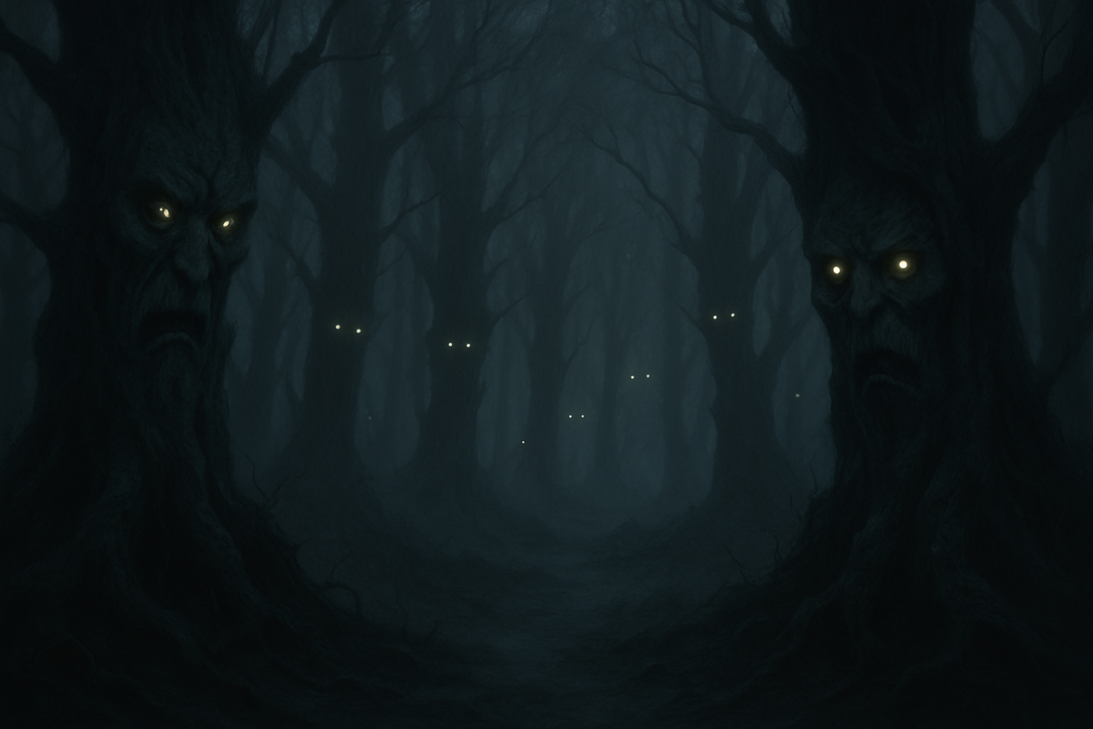 Внезапно старый дуб рядом с тропой издал протяжный скрип, и ветви его зашевелились, словно тёмные руки. Турист едва успел вскрикнуть, когда коряга, напоминающая чертополоховый щупальщик, вырвалась на тропу и взметнулась навстречу ему. В дрожащих глазах путника отразился нечеловеческий разум: дерево поднимало тяжёлые ветви-лапы, чтобы схватить и удержать его. Турист на рефлексах выпрямился и ударил по стволу посохом, за которым был зажат его рюкзак, но удар лишь вызвал тихий рев древесного исполина: коряга едва заметно покачнулась. Болезненный скрип коры едва не прогнал боль и страх: он почувствовал, как гнилая кора вонзается ему в ладони, раскалывая на два куска древесину. Царапина на ладони горела болью, но в крови бурлил адреналин, и турист не чувствовал её, продолжая отчаянно бежать вдаль. Из груди сорвался дикий рык, и он рванулся вперёд со всем напряжением до предела, стараясь поскорее оторваться от своего кошмара. В его глазах заблестела новая решимость: останавливаться было нельзя. Как в тумане, он ощущал, как корни поваленных деревьев впивались ему в ноги, когда он раскапывал землю голыми пальцами и вырывался из загребающих корней. Он размахнулся и разрубил посохом ветвь, которая зацепила его куртку, разрывая плоть на пару метров. Скрипя и трескаясь, дерево выпустило путника: резкий порыв ветра обдул его лицо, но короткий миг ужаса продолжался, пока не появился слабый отблеск луны сквозь полог листвы. Каждый удар сердца отдавался эхом в пустоте леса: руки и ноги больше не слушались, тело дрожало от напряжения и испуга. Одышка учащалась, руки горели огнем усталости, но инстинкт выживания подгонял его с каждой секундой, и он вырвался из чащи, бросившись наутёк. При каждом падении по ходу ноги топтались корни или старые стволы, но выживание превозмогало боль: каждый шаг отрывал его от темной пучины, которая пыталась поглотить его вмиг. Бегя вслепую в неведомом направлении, он вскоре наткнулся на заброшенную поляну. В лунном свете она выглядела как осиное гнездо памяти – круг из мёртвых животных в разных позах, словно застигнутые неподвижным сном. Каждый мускулистый зверь был покрыт пушистым одеялом гнили, а пустые глазницы отражали боль невозможности двигаться. Турист замер в страхе: среди лишайника и сухих ветвей раздался приглушенный рычание, и из центра поляны выросла стая кровожадных теней. Скрип осины прогремел за спиной — хвосты из костей прытко хлопали воздухом, словно тёмные существа леса проснулись вместе с его страхом. Турист отбросил посох и бросился наутёк, сердцу сжавшись от ужаса при каждом падении. Каждое движение давалось с трудом: одышка прерывалась жуткими звуками позади. Почти не отличая правда от кошмара, он только знал, что это преследование желает поглотить его. В отчаянии он даже крикнул, но лес ответил лишь глухим эхом его собственного голоса. Листва под ним тихо шуршала, обнимая его дрожащее тело, а темнота вокруг обостряла чувство безысходности. Кричать было бессмысленно — лишь жестокая тишина отвечала ему. Одинокий в этой адской погони, он прикусил язык, продолжая бежать дальше. Больше он не слышал ни шагов, ни шепота — только собственное безмолвное отчаяние. Схватившись за голову, турист еле сдержал вопль, когда в густом тумане перед ним возник силуэт девушки с почти родными глазами. Звонкий 