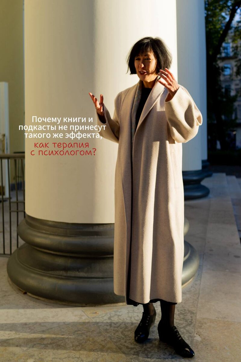 В фильме «Трое в лодке, не считая собаки» герой находит медицинскую энциклопедию и, прочитав её, обнаруживает у себя абсолютно все диагнозы… кроме родильной горячки (потому что он всё-таки мужчина). Ещё сто лет назад нам дали понять: если мы берёмся изучать сложные темы самостоятельно, то, скорее всего, найдём у себя что-то лишнее. Мы начнём ставить себе диагнозы, не обладая нужными знаниями. В своей работе я не рекомендую читать психологические книги или слушать подкасты — но не потому, что они плохие или там всё написано неверно. Причина в том, что это может ввести вас в противоречие. Вы начнёте сомневаться, а тогда зачем вам специалист? Терапия, в любом формате личная или групповая, не принесет результатов без доверия. Книги и подкасты не дадут вам личного взаимодействия и индивидуального подхода, которые необходимы для глубоких изменений. Возьмём простой пример: когда вы приносите ткань в ателье, чтобы вам сшили юбку, вы ведь не начинаете учить швею шить? Вы просто доверяете её мас