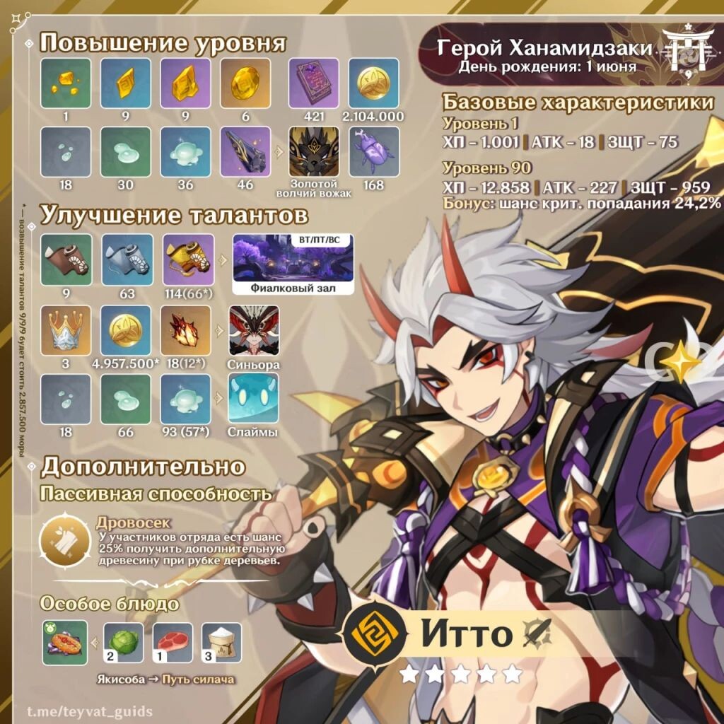 Материалы для прокачки уровня и талантов Аратаки Итто: