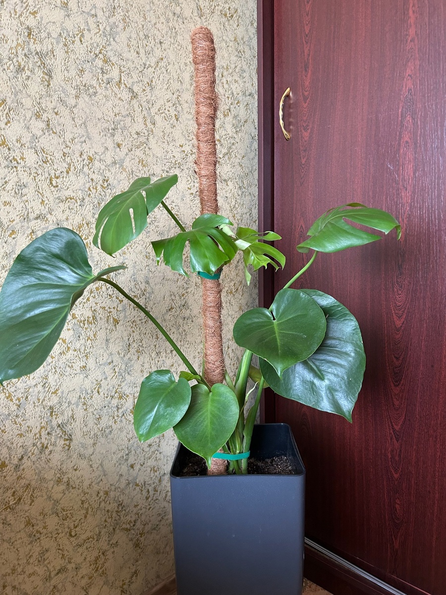 Добрый день. У меня есть вот такая монстера, она вроде как мельчит листья, я не знаю что с ней происходит. Посажена в грунт для пальм, с добавлением перлита, и биогумуса. Поливаю по просушке грунта. Листья выпускает, но они не такие большие как хотелось бы( Удобряю раз в 2 недели, удобрением для пальм Помогите пожалуйста, что сделать с ней🥺