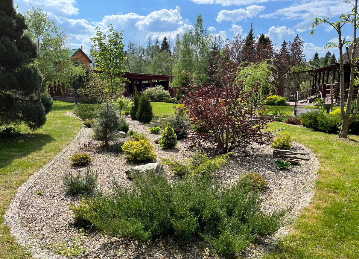 Второй орех посадили также на лесной части участка с другой стороны, и второй рос очень медленно, пока не оказался в составе растений, растущих в рокарии под спанбондом и щебнем.