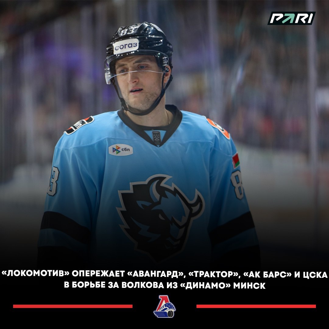 🔥🇷🇺 «Локомотив» стал главным претендентом на Александра Волкова из «Динамо» Минск. 🚨 В минувшем сезоне Волков провел 67 матчей в регулярном чемпионате и набрал 48 (18+30) очков при полезности «плюс 18». В плей-офф на его счету 3+2 за 7 игр при полезности «плюс 6». ✍️ Нападающий станет неограниченно свободным агентом 1 июня.