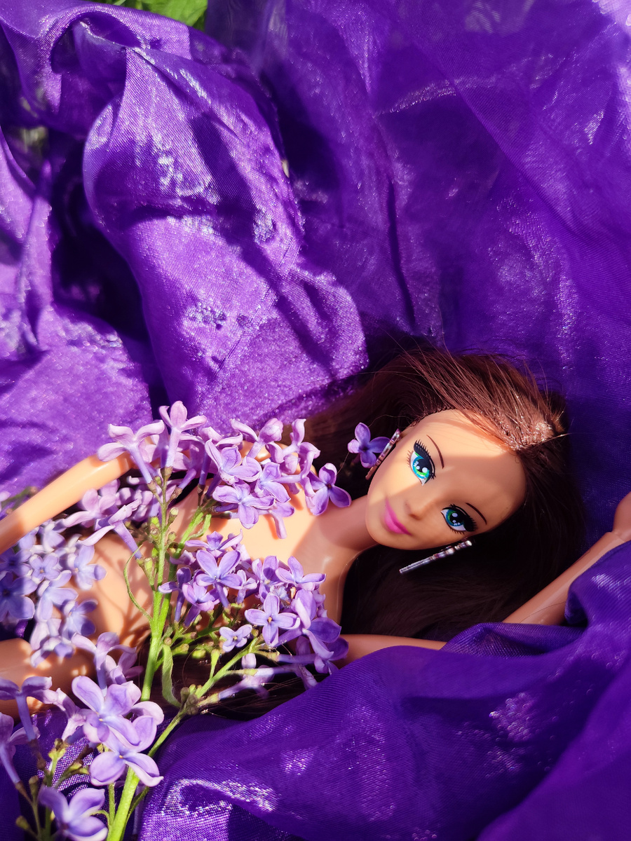 И моя последняя модель Лилит и её ярко-фиолетовая тюль😁 Тут мне пришлось гораздо сложнее, так как у Лилит поломался якорь и голова то и дело отваливалась. А еще из за чёрного платья у неё на теле жирная чёрная полоска, прямо в районе груди 🥴 теперь по ходу придется покупать новое тело🤦♀️ и дело не в финансах, а в том, что тело к её цвету кожу по скин тону фиг подберешь, либо придется покупать Дэфу Люси чисто из за тела. Ну короче, как обычно, не буду много писать, буду лучше показывать. Можно за считывать нам челендж куклы только с цветами. Сирень еще не отцвела, а на некоторых кустах она еще даже не зацветала, поэтому возможно у меня еще будут фотосессии с этим чудесно пахнущем и красиво цветущими кустом. Классно, когда волосы длинные😄 Всех благодарю за внимание 😊 В июне моему каналу исполняется пол года, ровно шесть месяцев, как я схожу с ума вместе со своими куклами, бегаю в любое время года по оврагам, лесам да болотам, что бы пофоткать их😄 Поэтому случаю