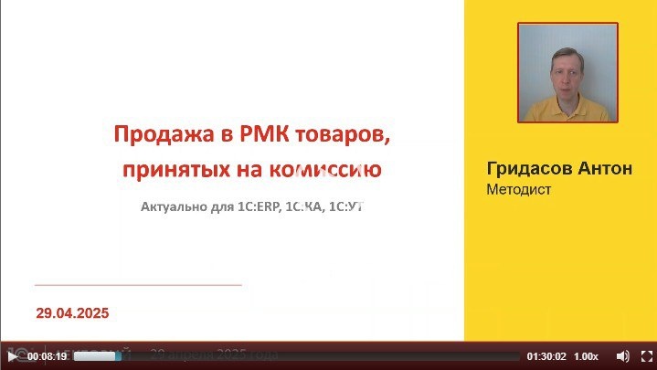 ❗️ О продаже в РМК товаров, принятых на комиссию рассказал Антон Гридасов, эксперт 1С в лекции на тему Новое в программах 1С:ERP и 1С:КА версии 2.5.22 и 1С:УТ версии 11.5.22, также в лекции были рассмотрены вопросы: 00:03:34 Хранение наименований исходящих документов 00:10:50 Интеграция с Ozon. Передача заказов в доставку 00:16:14 Ретро-бонусы. Расчет по шкал 00:27:18 Работа с маркируемыми товарами и ЭДО в комиссионной торговле, агентских закупках, передаче на ответственное хранение и производстве по давальческой схеме 00:34:01 Цифровой рубль 00:36:04 Доработки в бюджетировании 00:39:40 ФСБУ 4 "Бухгалтерская (финансовая) отчетность" 00:42:08 Контролируемые сделки 00:47:57 Инвентаризация активов и обязательств 00:54:08 Сторно счетов-фактур на аванс 00:56:57 Курсовые разницы в налоговом учете 00:59:11 Учет запасов по среднескользящей стоимости 01:14:41 Учет выпуска продукции по плановой стоимости 01:19:48 Изменения в учете внеоборотных активов 👉 Смотрите бесплатно полную видеозапись л