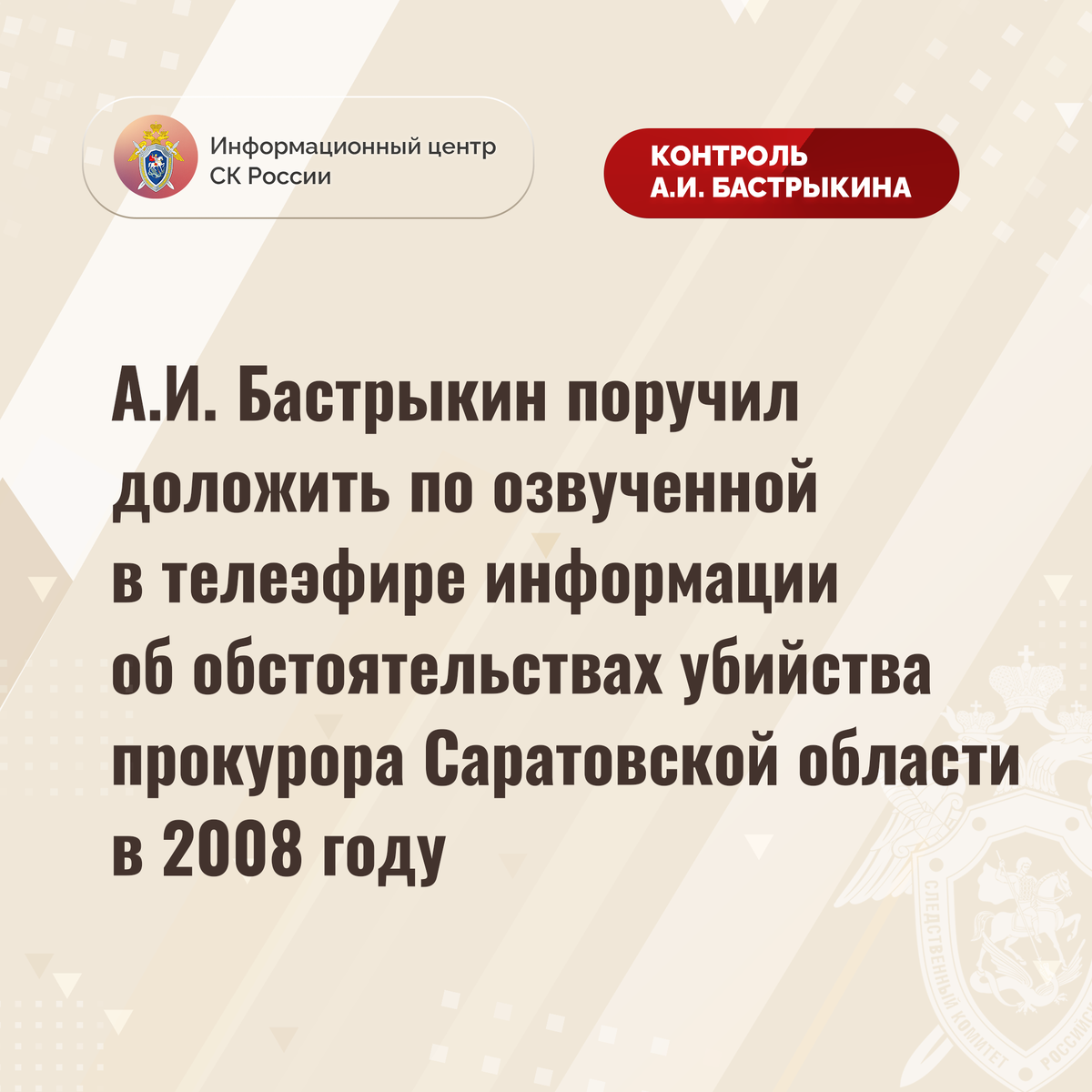 А.И. Бастрыкин поручил доложить по озвученной в телеэфире информации об обстоятельствах убийства прокурора Саратовской области в 2008 году