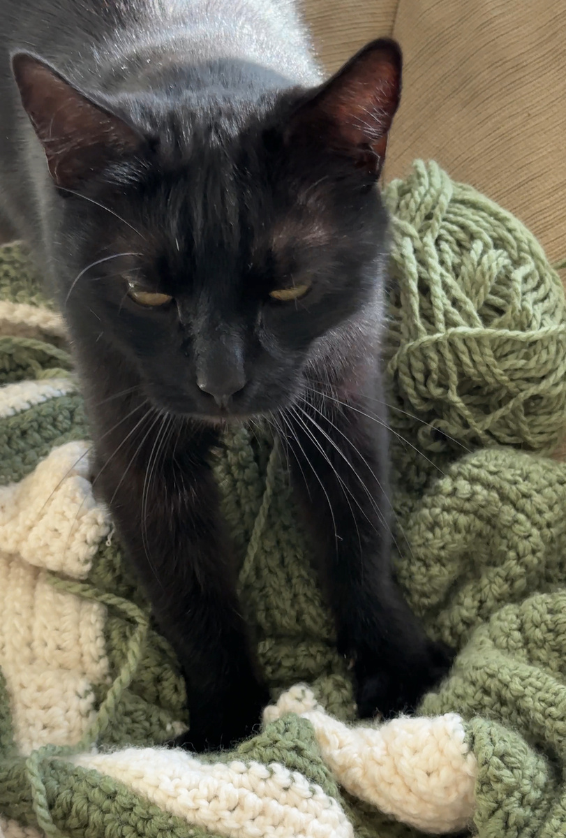 У него уже все хорошо. Радостно мнет мой недовязанный плед, оставляя на нем зацепки. Несколько дней мы ездили с ним в клинику на обработку раны и уколы антибиотика. В последний раз он уже не очень то хотел обрабатываться, возмущался. Ну, значит, здоров, решила я. И перестала мучить его этими поездками. Ну и объективно, я вижу что рана чистая и затягивается.