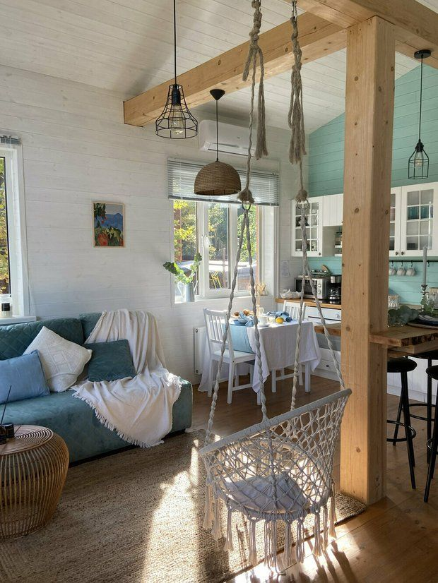 Пледы, чехлы, подушки, занавески. Да, дача — это про ткань. Она задаёт настроение и маскирует недостатки. Даже старое кресло с накинутым покрывалом заиграет заново.