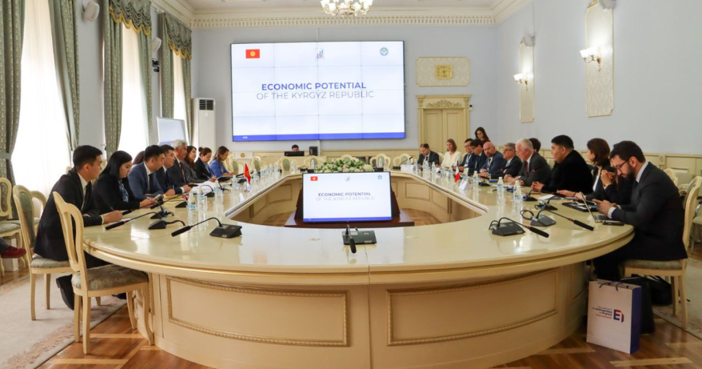 Бакыт Сыдыков, Кыргызстандын экономика жана соода министри, Франциянын MEDEF бизнес кеңешинин делегациясы менен жолугушуп, экономикалык кызматташтыкты кеңейтүү жана инвестициялык долбоорлорду ишке ашыруу мүмкүнчүлүктөрүн талкуулады. 🌍 Министр экономика жана коммерция Бакыт Сыдыков 26-майда Франциянын MEDEF Деловой кеңешинин делегациясы менен жолугушуу өткөрдү. Бул кеңеш Франциянын эң ири иш берүүчүлөр уюму болуп саналат. 🏗 Делегациянын курамына курулуш, темир жол инфраструктурасы, энергетика, кайра жаралуучу энергия булактары, консалтинг жана башка тармактарда иштеген алдыңкы француз компанияларынын өкүлдөрү кирди. 🤝 Жолугушууда тараптар эки тараптуу экономикалык кызматташтыктын келечегин, өз ара пайдалуу өнөктөштүктү кеңейтүүнү жана Кыргызстандын экономикасынын негизги секторлорунда инвестициялык долбоорлорду ишке ашырууну талкуулашты. 📈 Сыдыков делегацияга өлкөнүн экономикалык абалы боюнча презентация жасап, туруктуу өсүштү, инвестициялар үчүн ачыктыкты жана өнүгүүнүн артыкчылыкт