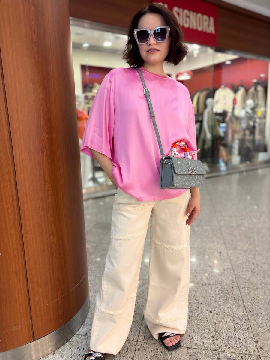 Нежное сочетание розового с белым. Усилили эффект лиловыми очками и лаковой сумочкой 🌸 Итальянский образ на каждый день!